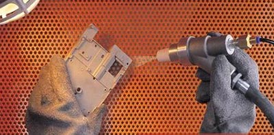 喷砂工艺可分为气压喷枪及叶轮拋丸两种,而喷砂工艺的优点在于它能够除披峰、去除在压铸、冲压、火焰切割和锻压后的毛刺,对较薄工件及有毛孔的毛刺效果更好,它可清理砂铸过程残余的砂粒、清理铸铁件或钢材的锈渍、清理热处理、烧悍、热锻、辗压等热工序后的除氧化皮。另外,在涂层应用上,它可把现有的涂料或保护层除去,在覆盖铸件上的缺陷如龟裂或冷纹,提供光泽表面。