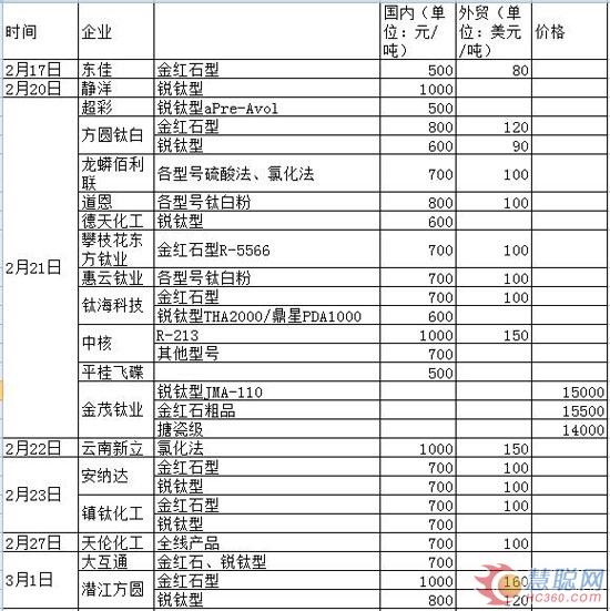 龙蟒佰利相关负责人接受记者采访时称,不仅国内,目前全球范围的钛白粉企业都在调涨价格,出口需求逐日扩大。供应持续偏紧的情况下,下游企业订单已经排到2个月后了。慧聪化工网统计到47家钛白粉生产企业的提价信息(数据截止到3月7日上午),让我们来看看春节过后有哪些钛白粉企业涨价。